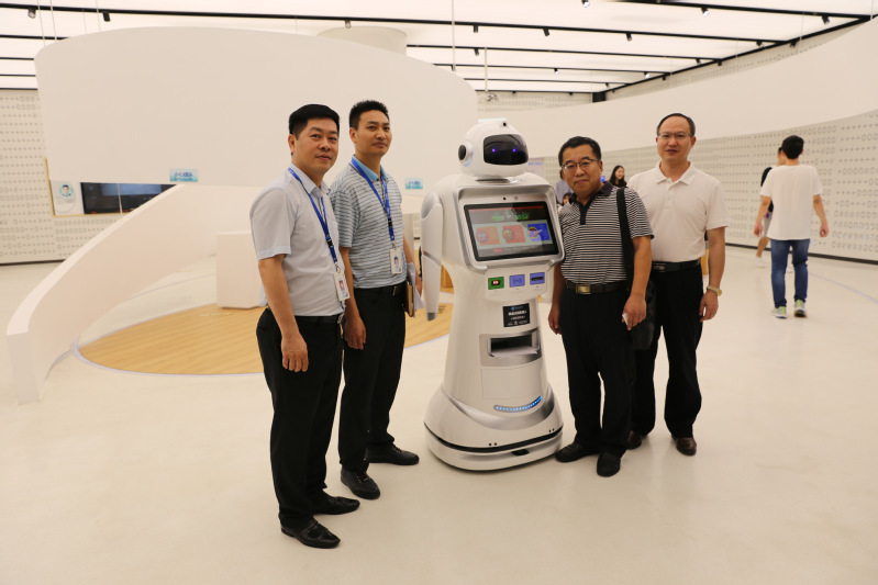 2018年5月18日,财税学院党委庞磊院长、朱信贵书记、姚雪绯副教授、伍春梅主任,以及2017级财政学研究生、2017级税务硕士研究生一行近50人,在广东美基沃得科技有限公司戴总经理、留副总经理的带领下,参观了位于广州南沙的香江独角兽牧场加速器创意孵化空间,以及美基沃得开发的税务和彩票服务机器人。