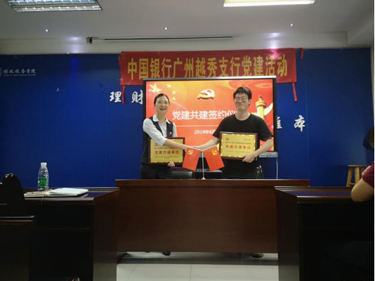 6月3日,财政税务学院研究生党支部与中国银行越秀支行风险内控部党支部在北二330举行党支部共建活动,参加活动的人员有财政税务学院党委朱信贵书记、中国银行越秀支行风险内控部党支部书记、风险内控部主任梁茵茵、风险内控部副主任李汉生、全体研究生党员。英国威廉集团官网财政税务学院研究生党支部与中国银行广州越秀支行风险内控部党支部签署了《党建共建协议书》,互赠“党建共建牌匾”,并就党建共建工作计划、如何加强双方学习交流、促进其他领域合作等方面展开讨论,提出了可行性的建议与具体实施计划。最后,由中国银行越秀支行杨茜经理就校园招聘、面试准备等问题与参会的研究生党员进行了深入的交流。