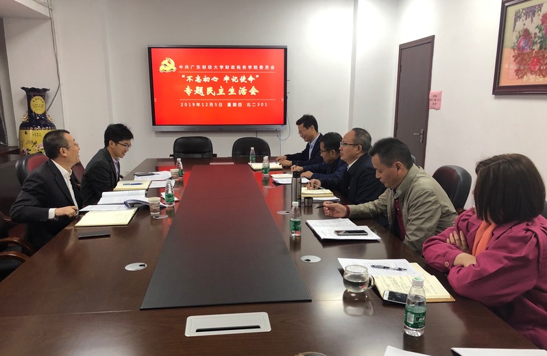 根据学校党委“不忘初心,牢记使命”主题教育工作的部署和要求,财政税务学院党委“不忘初心、牢记使命”主题教育专题民主生活会于2019年12月5日下午在北二301召开。学院党委副书记陈树武到会指导,组织部科长刘文基到场督导。