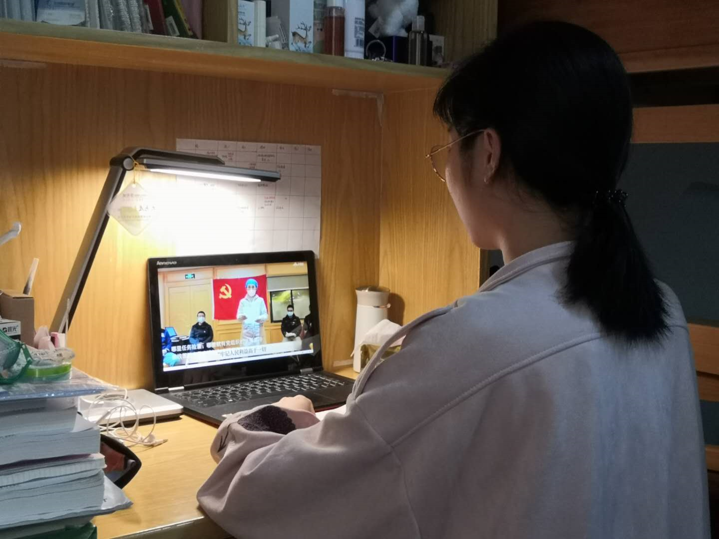 2016级税收学3班郭思淇观看开学后第一课后,表示“作为一名共产党员,一名学生干部,我看到无数共产党人第一时间奔赴前线,始终坚守在抗疫第一线,许多医护人员因公殉职,用生命谱写出青春战歌,对他们的付出有着无比崇敬之情。在疫情防控斗争面前,青年学生必须肩负起时代赋予的使命和责任,与祖国同命运,与人民共患难,为夺取抗击新冠肺炎斗争的胜利作出应有的贡献。”