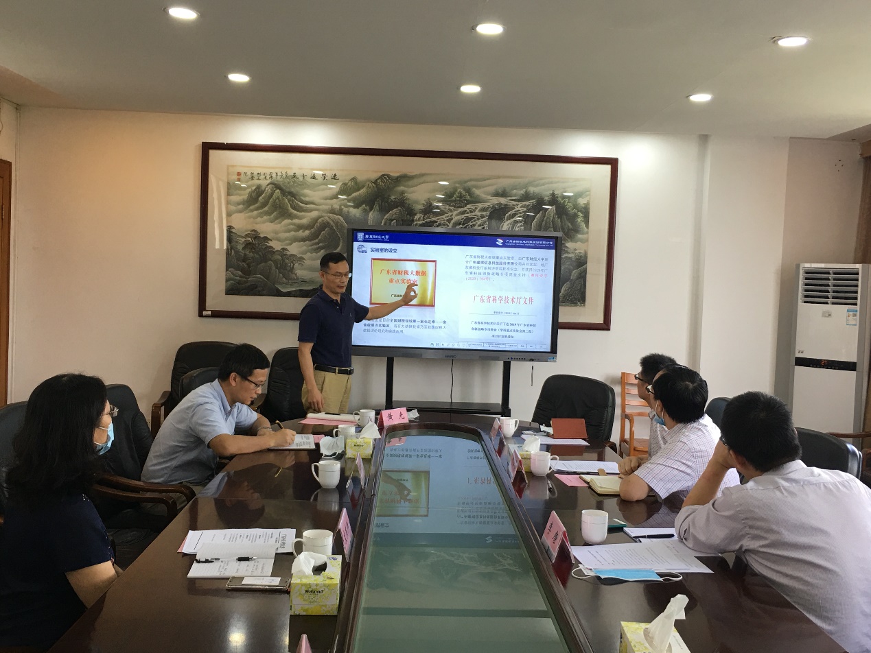 黄光研究员对广东省财税大数据重点实验室的情况进行了介绍,特别是针对来宾关注的重点实验室项目的申报、筹备、规划、建设等方面进行了经验分享。双方均希望今后继续在科学研究、学术成果转化、智库建设等方面加强沟通、交流与合作。