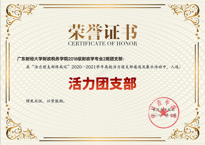 2018级财政学2班团支部获2020-2021全国高校活力团支部