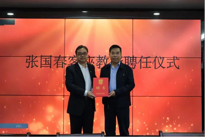 郑贤操为张国春颁发客座教授聘任仪式