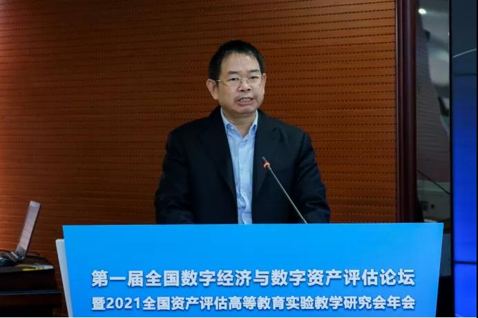 第一届全国数字经济与数字资产评估论坛暨2021年全国资产评估高等教育实验教学研究会年会是在党的十九届五中全会发展数字经济精神的指引下召开的,旨在探讨如何在数字经济的背景下推进数字资产化和资产数字化,建立数据资源的产权、交易流通、跨境传输和安全保护等基础制度和标准规范,推动数据资源开发利用。原财政部资产管理司巡视员张国春、中国资产评估协会副秘书长庄伟、我校党委书记郑贤操、副校长邹新月、中南财经政法大学工商学院副院长文豪、广东省资产评估协会会长曾毓昌、广东省资产评估协会副会长兼秘书长陈桓考等来自全国60多所单位的数字经济和资产评估专家在线上和线下出席了本次会议。