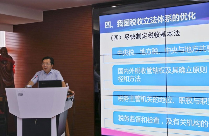 新中国成立以来我国税法体系经历了曲折的发展历程。从建国初期几乎都是政务院公布的税收行政法规,到1958年全国人大常委会通过首部税收法律;从“文革”时期税法体系遭到破坏到1978年党的十一届三中全会后得到恢复与发展。我国税收立法体系实际上是在改革开放之后才慢慢建立起来,李院长将其分为三个阶段:以法治税时期、依法治税时期、全面依法治税时期(2012年党的十八大以来)。虽然我国的税收立法体系在不断完善,但目前仍存在一些问题,比如宪法难以为税收立法提供直接的法律依据、税收立法权限体制不尽合理、税收法律与税收行政法规比例失衡等问题。针对这些问题,李院长也提出了健全税法体系的相应对策。