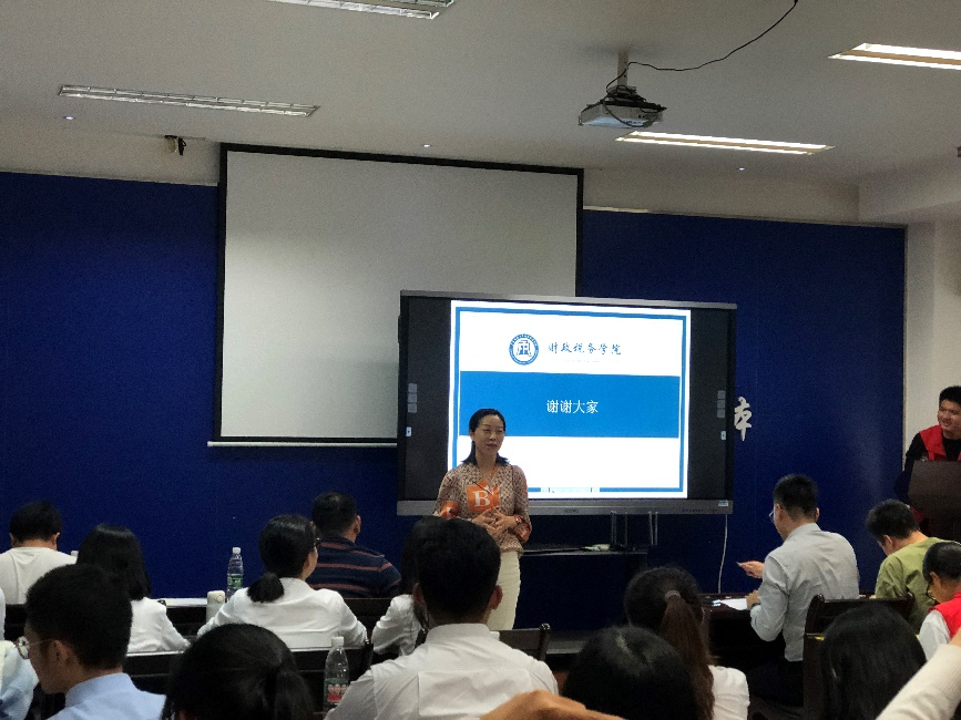 答辩会最后,郑慧娟副院长首先向在场的评委、嘉宾、同学表示感谢,为候选人所取得的优异成绩与精彩表现表示赞赏,发出“仿佛在观摩神仙打架”的感叹。然后,副院长表达了对同学们的殷切希望,寄语同学们继续加油,为更高的目标努力奋进,为财税学院争光。