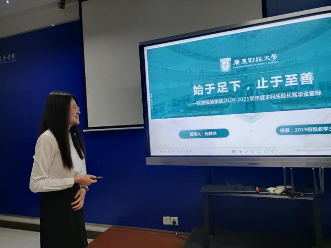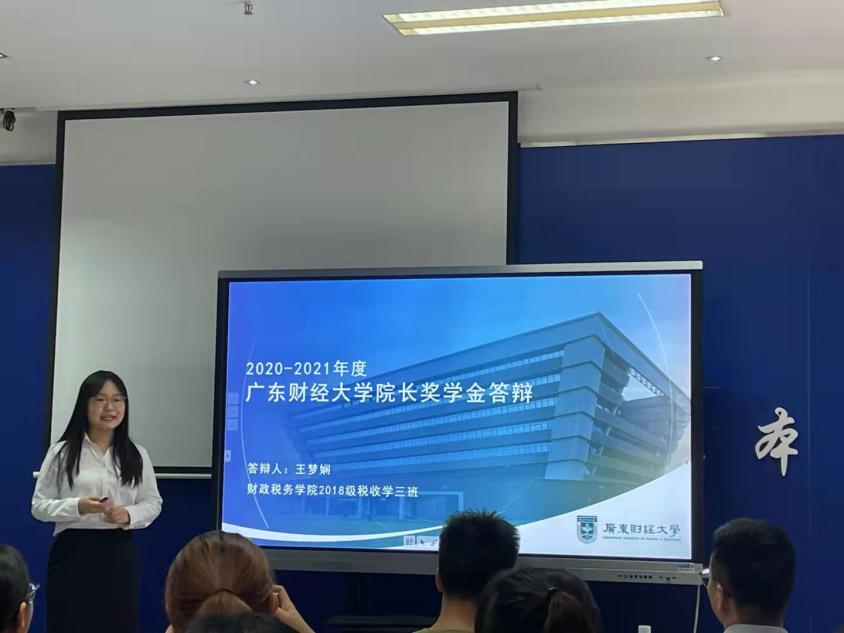 在短短三个小时里,25位候选人分别展示了自己在广财学习生活的经历,分享了自己在思想道德、学习成绩、社会实践、创新创业活动等方面的成果与进步。一页页制作精美的PPT向大家展示了他们丰富多彩、硕果累累的学习生活,为师弟师妹们树立了良好的榜样。在提问环节中,各位评委纷纷抛出了深刻而有意义的问题,候选人们也针对问题作出了自己的回答。最后,评委老师们给予了候选人们一定的建议与期望。至此,答辩环节结束。