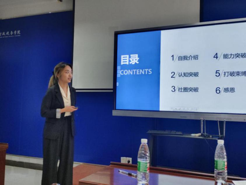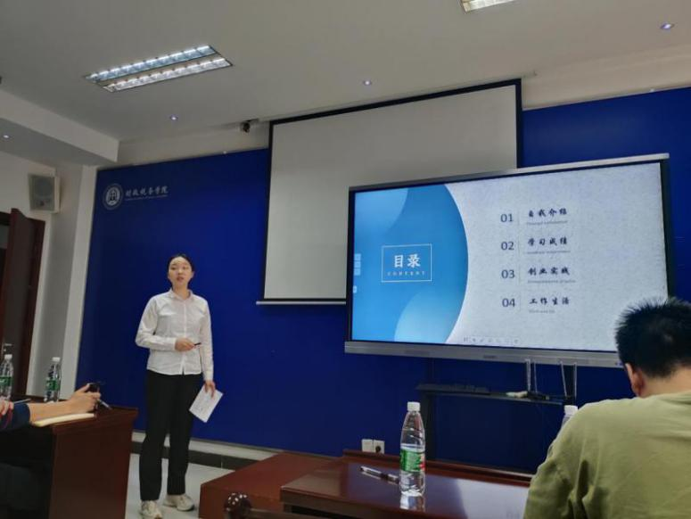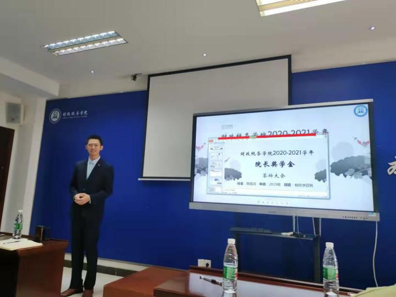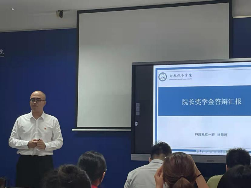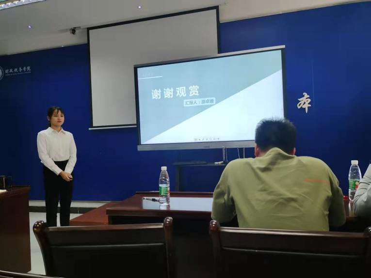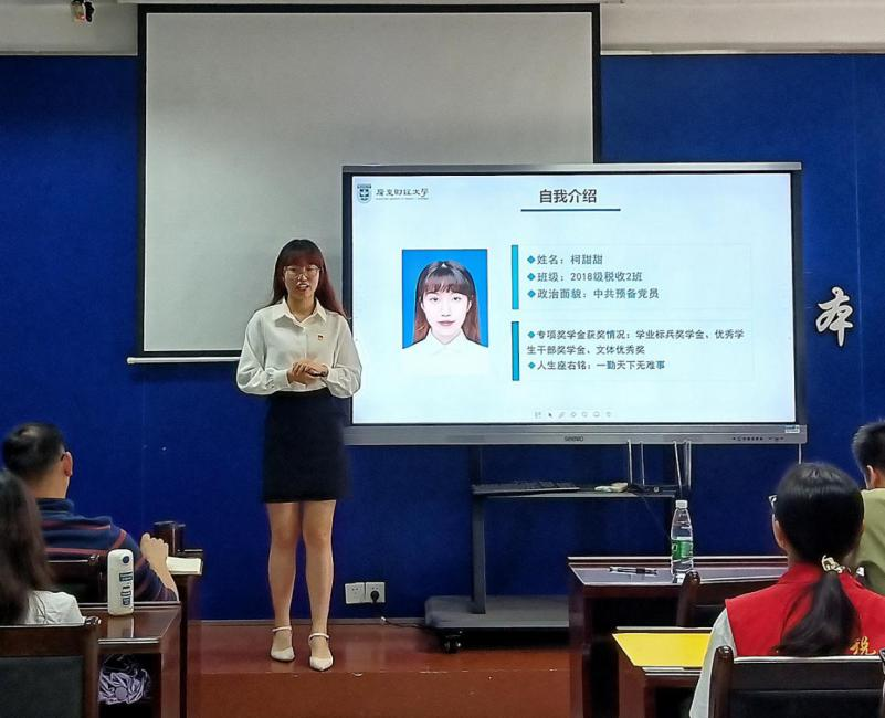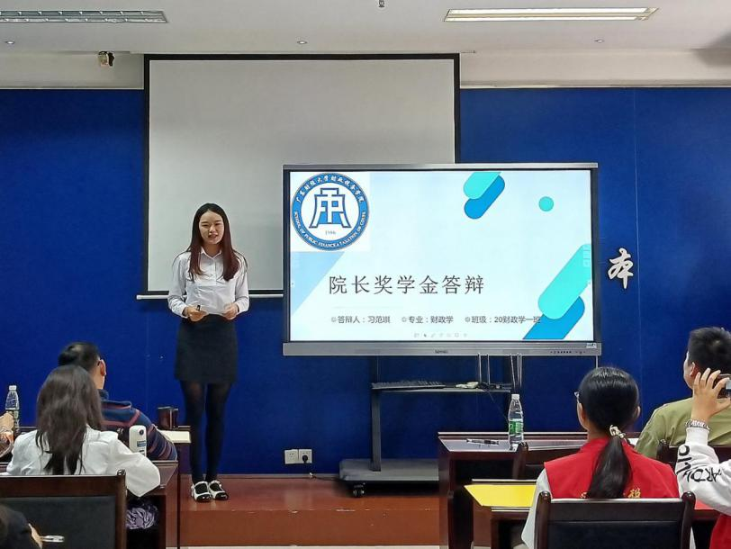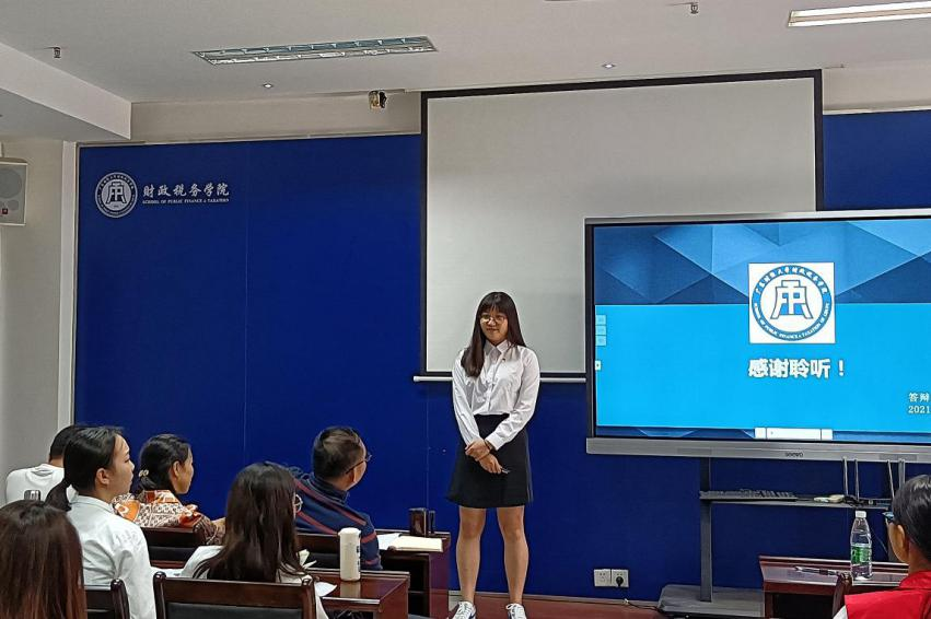 此次答辩大会分为两个部分。第一部分是PPT展示,候选人需要在5分钟内进行PPT讲解答辩;第二部分是在2分钟内评委进行提问,候选人回答问题。来自财税学院的25位候选人在台上展示了他们制作精良的PPT,他们谈吐得体、自信大方,展示着财税学子的青春活力。