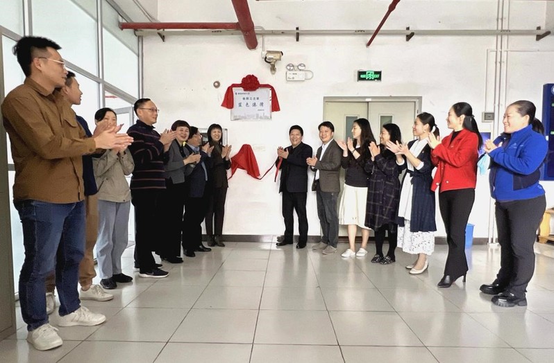 在仪式上,刘祖华副书记与校工会常务副主席郑红艳在掌声中为“蓝色港湾”揭牌。