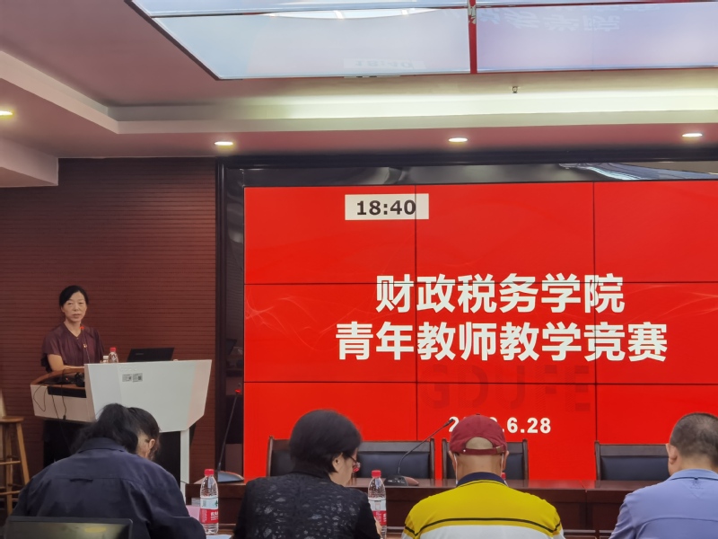 628日下午,为了提高学院教师教学水平,激励教师重教、乐教并潜心教书育人,提高课程教学质量,同时落实学校的“第八届青年教师教学竞赛”初赛工作,财政税务学院在北二338会议室举办了青年教师教学竞赛。竞赛由财政税务学院郑慧娟副院长主持,校督导组孟令国教授,刘俊峰教授、陈菂教授,秦嗣毅教授,熊青珍教授担任评委,学院全体教师观摩了比赛。