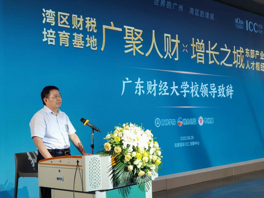 8月26日上午,广财财税培训中心湾区教学基地揭牌仪式,在广州增城区宝盛国际创新中心举行。我校校长于海峰,副校长邹新月,增城区人大常委会副主任毛敢良,增城区人社局就业中心主任曾文秀,宝盛国际创新中心董事长陈伟,广州恒惟信科技集团有限公司董事长邵建盛,粤税康财税咨询(广州)有限公司总经理庞艳,我校校友会办公室主任段丹,财政税务学院院长李林木,院党委书记吴瑛、副院长郑慧娟、黄华,广东地方公共财政研究中心主任姚凤民和财政税务学院师生代表及企业高管,近百人参加揭牌仪式。揭牌仪式由李林木主持。