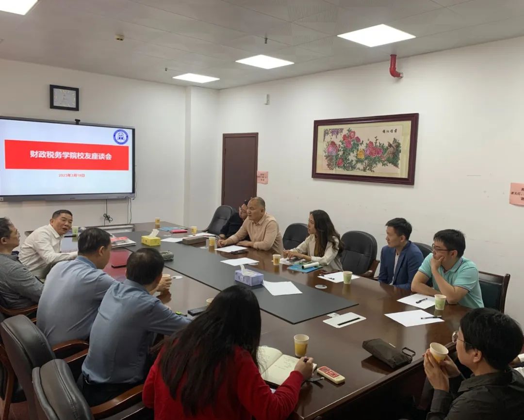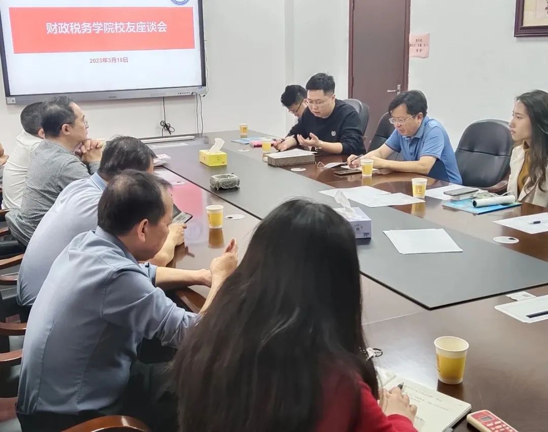 3月18日下午,财政税务学院校友座谈会在北2-301会议室召开。院长李林木、副院长郑慧娟、院党委副书记崔晓莹、原财税学院老书记谢访春、老院长姚凤民、教师代表石卫祥以及退休教师伍春梅老师等热情接待了校友赖国华、邵建盛、黄博宇、曾金飞、陈挚友、黄岸、吕翀、陈晓芳一行。