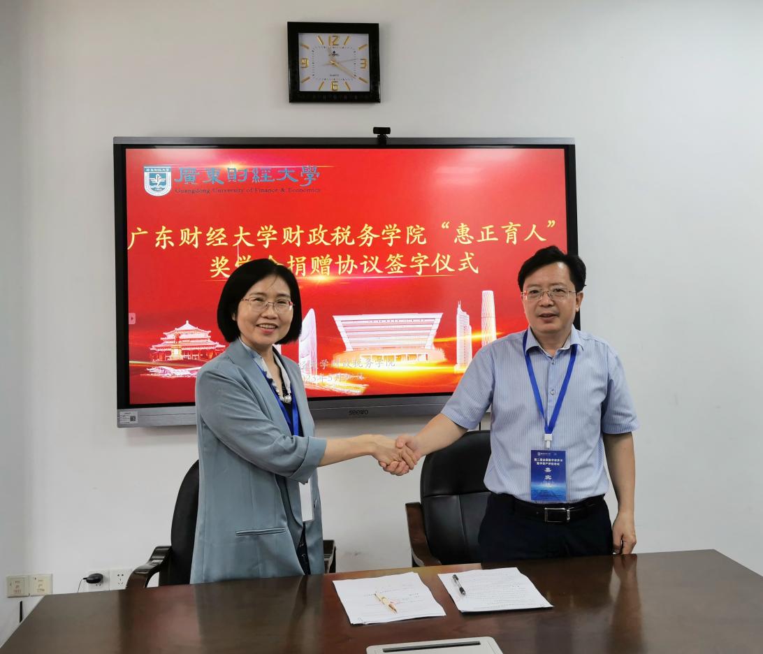 惠正出资人民币10万元设立“惠正育人”奖学金,用于激励财政税务学院资产评估专业成绩优秀学生和资产评估师考试全科通过的学生。