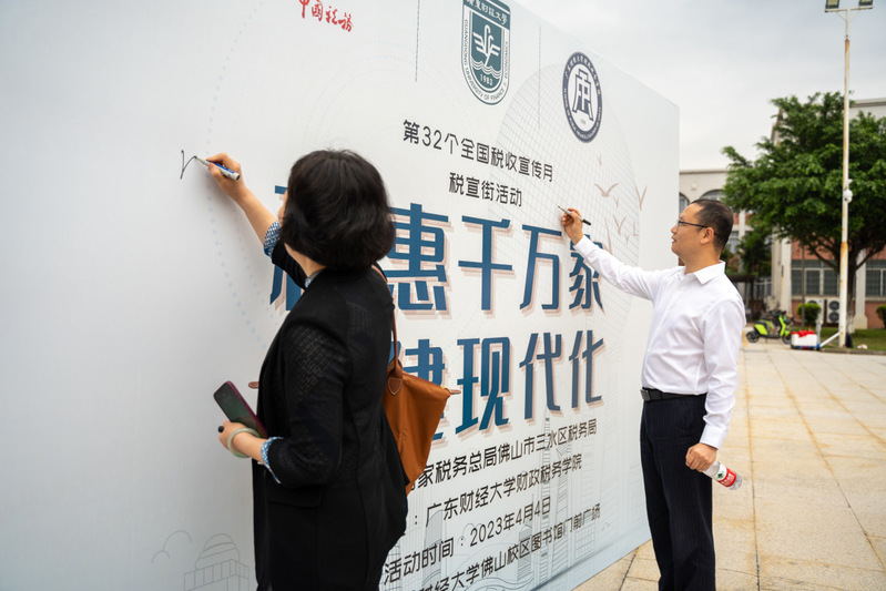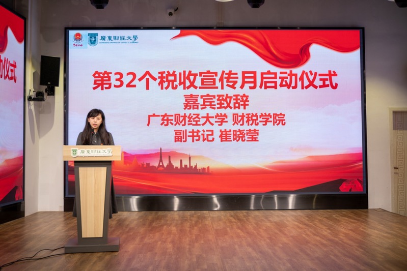 4月4日下午,“三水税务-财政税务学院”第三十二个税收宣传月启动仪式在佛山校区同心楼举行。国家税务总局佛山市税务局办公室主任麦晓炜、三水区税务局副局长易剑明、财政税务学院党委书记吴瑛、副书记崔晓莹、湾区影视产业学院副院长张琦等出席本次活动。