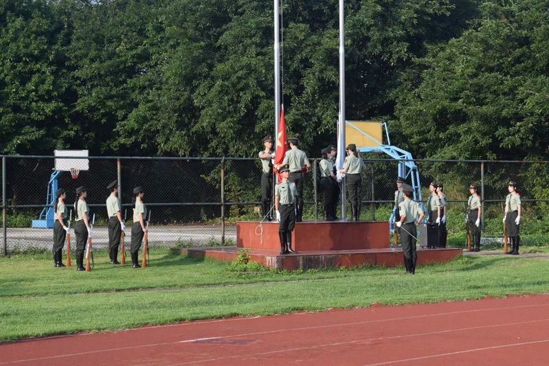 紧接着,旋律高昂的校歌响起,校旗伴随着青春向上的歌曲徐徐升上高空,伴国旗同在。