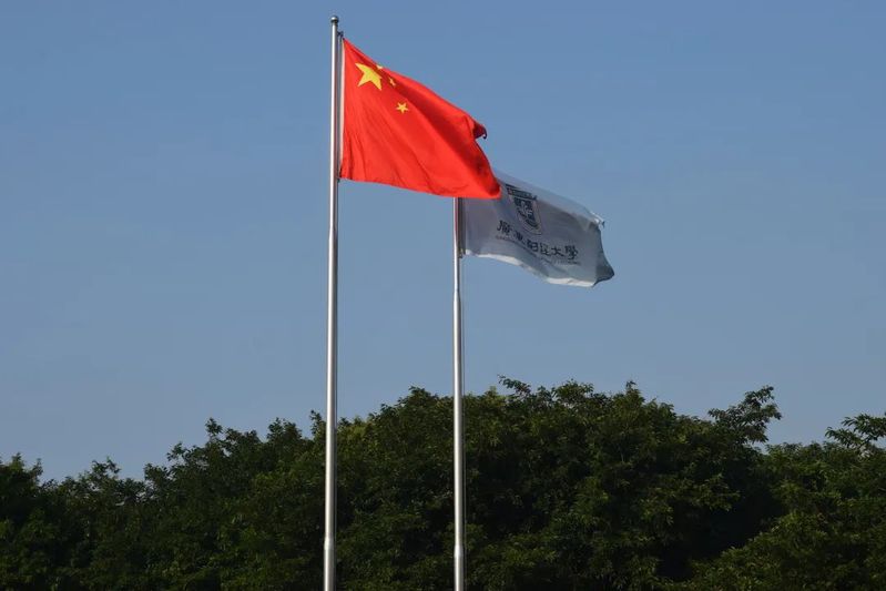 在蓝天下,迎着初升的晨曦,庄严而又隆重的升国旗仪式圆满结束。相信同学们在红旗之下,心中理想信念会更加坚定,必将笃行不怠,奋斗不止,为我校建设大湾区一流财经大学贡献财税学子的力量,为中华民族的伟大复兴贡献青春的力量。