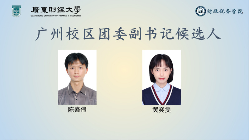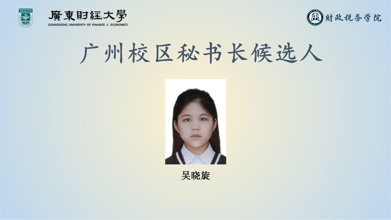 随后,大会进入主席团选举议程,由主持人介绍第三十七次学生会主席团选举方式及候选人名单。首先进行广州校区候选人吴晓旋线上进行竞选发言,接着进行佛山校区候选人夏歆怡、殷颢诚、罗俊杰轮流上台竞选演讲。在激情热烈的竞选演讲中,各位候选人们神采奕奕、声情并茂、自信满满,回顾了自己与学生会的点点滴滴,分享自己在学生会工作过程中的美好经历与得到的丰富收获,展示了自身的优势与长处,同时抒发了对财政税务学院的热爱,表达了自己要为学院做出更多奉献的决心。