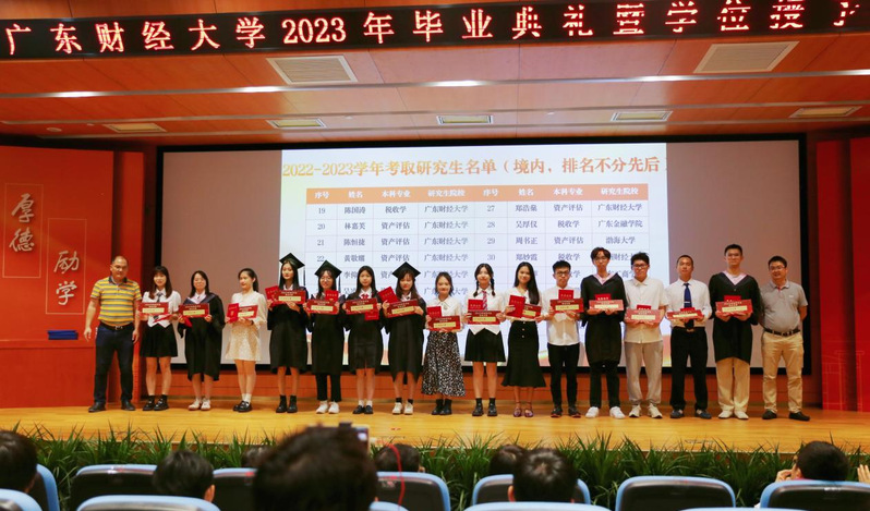 吴瑛书记宣读财政税务学院《关于表彰2023届考研先进个人的决定》,并介绍我院2023届毕业生考研被录取的情况:吴嘉仪等34名本科生考取国内高校硕士研究生,张乐等14名本科生被境外高校录取为硕士研究生。同时财税校友基金会决定,从校友基金给予成功考取研究生的同学每人500元的奖励。