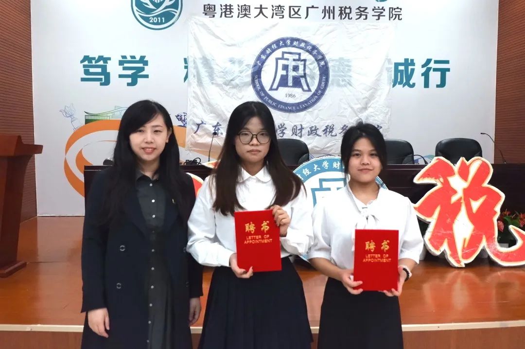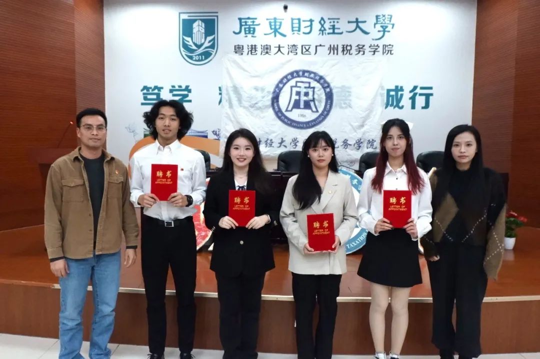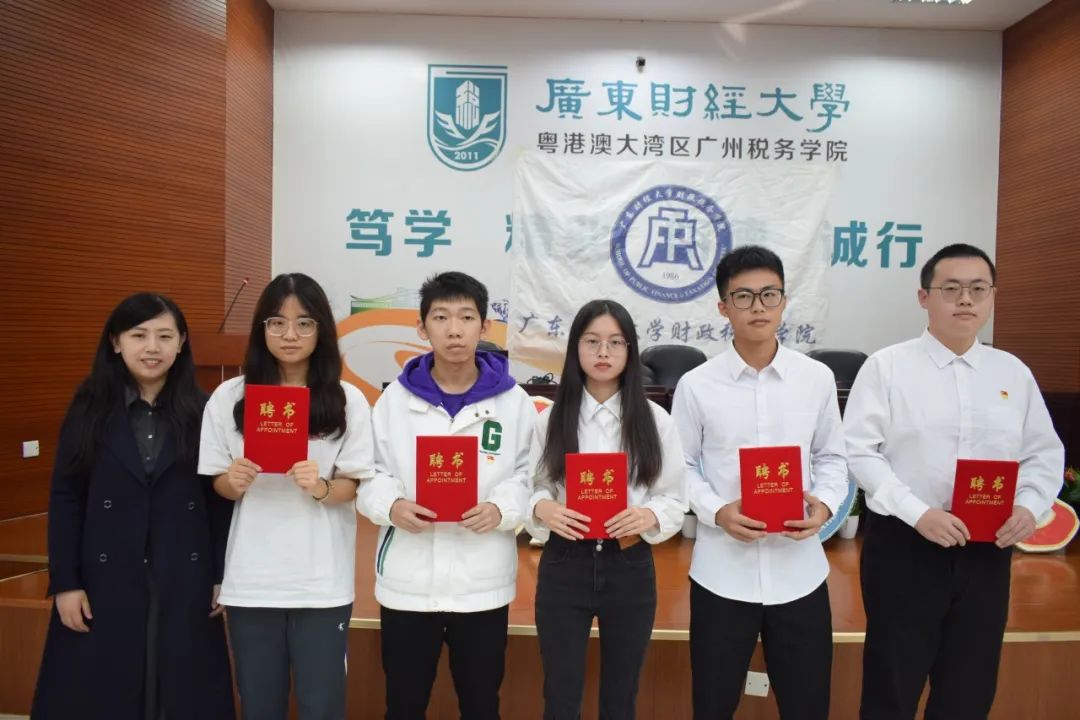 崔晓莹老师分别为财政税务学院广州校区团委学生会四位常委以及各部门负责人颁发聘书。
