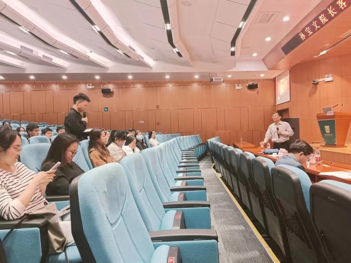 聘任仪式结束后,孙宝文教授以“研究选题与论证方法”为主题,为我校数百名青年教师和研究生开展了科研能力提升培训。孙宝文全面梳理了国家级课题申报的基本内容、流程环节以及注意事项等。着重从选题背景、选题意义、研究现状综述、主要研究内容、研究方法与技术路线、研究重点、难点与创新等方面,分享了课题申报的方法和技巧。最后,孙宝文与现场的师生开展了互动交流:针对他们提出的问题,给予了详细解答。