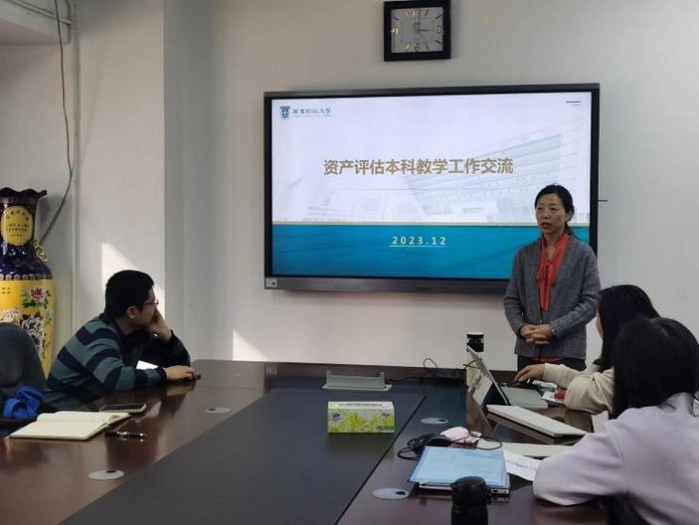 郑慧娟副院长分享了资产评估本科教学工作的先进经验,郑院长从党建引领,注重发挥课程思政在资产评估专业教学中育人作用出发,分析了资产评估专业的优势:资产评估专业师资力量雄厚;本科生就业率较高,考研、出国深造积极性高;专业建设支撑平台齐全。郑院长同时还总结了资产评估专业目前存在的问题:教学类项目较少、缺乏标志性教学成果;本科生基础薄弱,学业规划不清晰;专业国际化待取得突破。郑院长着重介绍了本科教学项目与比赛和专业国际化计划,鼓励支部党员教师积极参加各类教学比赛,积极参与专业建设国际化工作。