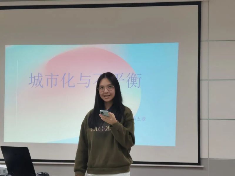 第二组张珈和张欣怡分别分享了兰小欢的《置身事内》和居民债务负担问题。张珈分享了城市化与区域发展不平衡问题;张欣怡同学认为当前我国居民的债务负担较高,且在持续快速上升,主要原因是房价的过快上涨。于井远老师建议大家多读经济类书籍,了解我国城市化问题,尤其是在我国现行的财政体制下思考城市化带来的各种影响。