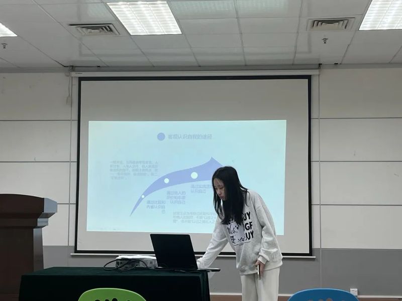 接着,心理委员何梓晴开展以“众人拾柴火焰高”为主题的润心班会。何梓晴同学首先提出问题“我们真的认识自己吗?”,然后建议同学们应找到适合自己的社交方式,用MBTI人格测试来检测自己的性格属性。最后带领大家开展了乒乓球接力赛小游戏,让大家感受到了团队合作的意义。