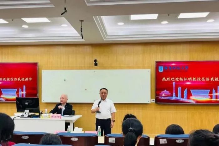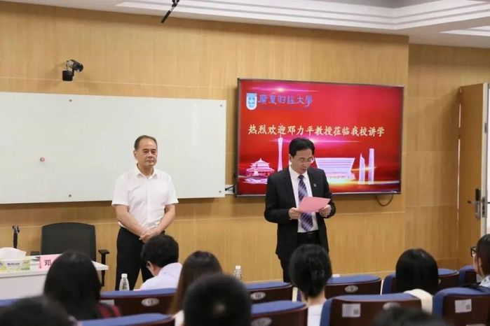 2023年10月27日下午,应邀前来出席我校四十周年校庆的第十二、十三届全国人大常委会委员、厦门大学闽江学者特聘教授、厦门国家会计学院中国特色社会主义财税研究中心主任邓力平教授在我校作了题为《在新征程上坚持和完善社会主义基本经济制度》的讲座。
