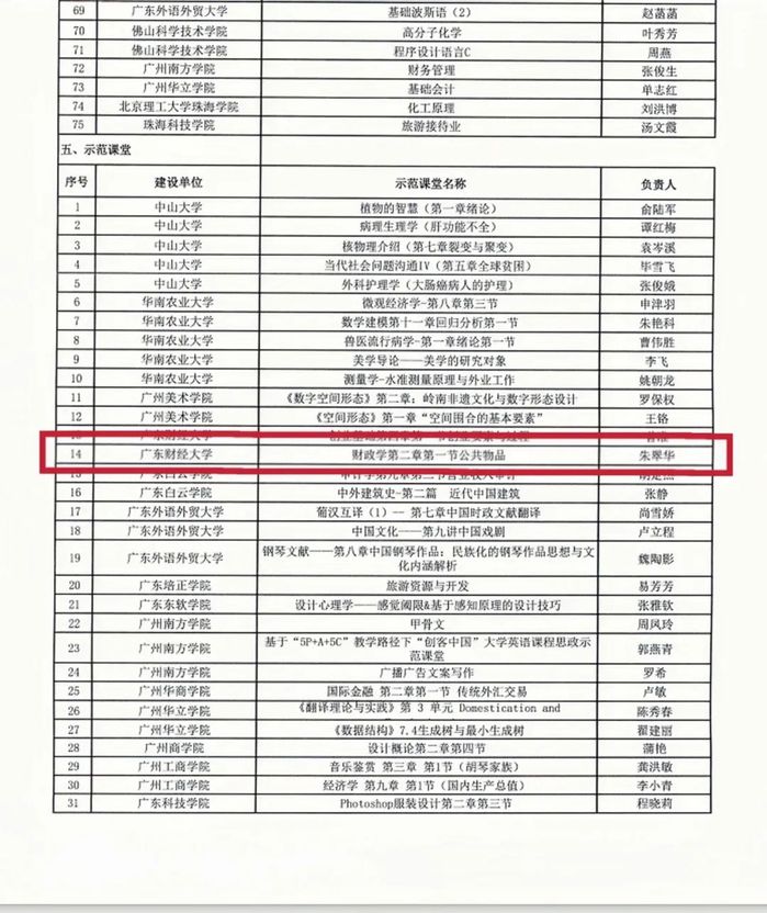 4月11日,广东省教育厅发布了《广东省教育厅关于公布2022年度本科高校课程思政改革示范项目认定名单的通知粤教高函》(粤教高函〔2023〕14号)。我院于海峰教授的“税收学专业课程思政示范团队”与朱翠华副教授的“财政学第二章第一节公共物品示范课堂”入选。