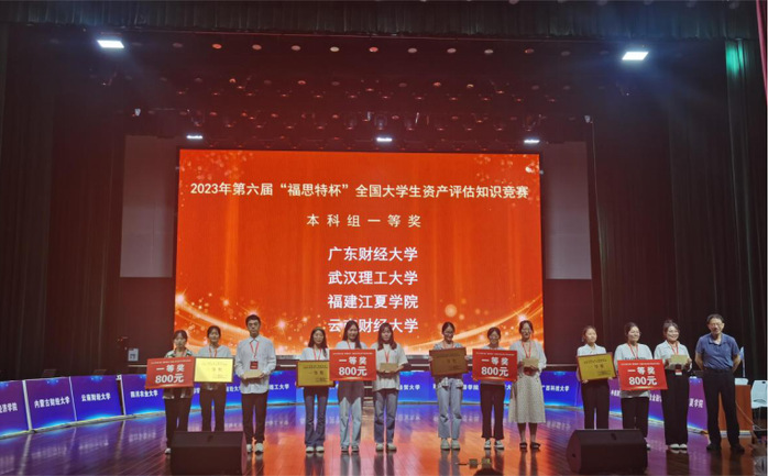 2023年9月9日,第六届“福思特杯”全国大学生资产评估知识竞赛在中国地质大学(武汉)举行,我院学子2022级研究生尚红、刘杨和2020级本科生陈志远(指导教师韩丽娜、尚晶)代表学校参赛,荣获一等奖。
