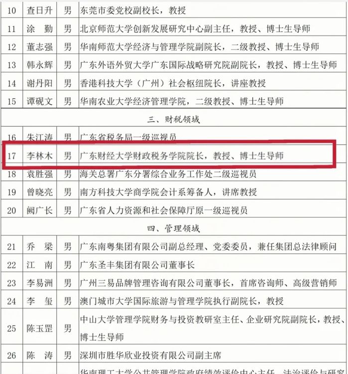 广东省十四届人大常委会从省内外共聘任42名财经咨询专家,覆盖人大财经实务、经济、财税、管理、金融、审计、工程科技和法律实务等8个领域。我院李林木教授受聘为财税领域的5名专家之一。