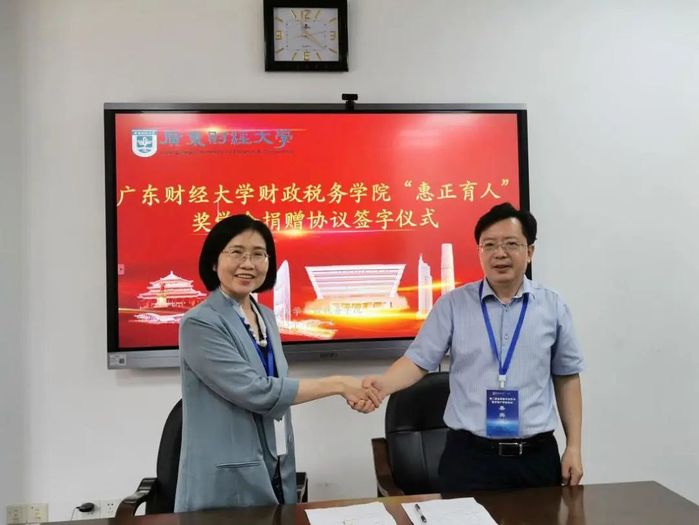 5月20日,“惠正育人”奖学金捐赠签约仪式在财政税务学院会议室举行。广东惠正资产评估与房地产土地估价有限公司董事长郑心苗、常务副总经理兼财务总监李咏缨、副总经理王伟平、绩效评价与咨询评估技术总监徐贤韬、财政税务学院院长李林木、院党委书记吴瑛、副书记崔晓莹等参加了活动。