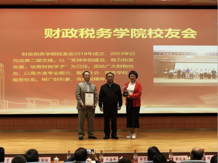 英国威廉集团官网校友会&基金会2023年度工作会议在广州校区正心堂顺利召开。工作会议上,学校向校友通报了过去一年学校的建设发展情况,并为积极支持学校发展建设的地方、学院、行业/兴趣俱乐部校友会颁发了感谢状,诚挚感谢校友组织在“凝人心、聚财力、筑校魂”等方面发挥的重要作用。财政税务学院校友会获表彰,于海峰校长为财政税务学院校友会颁发感谢状和纪念品。