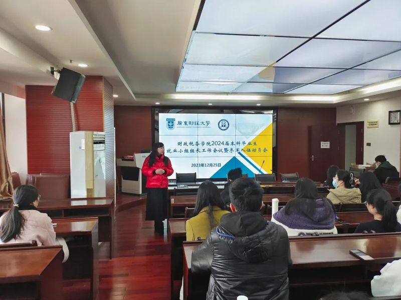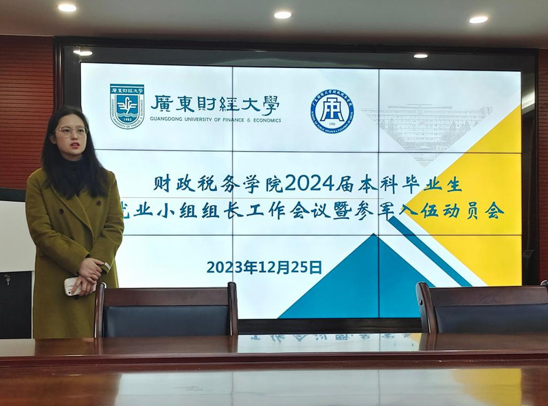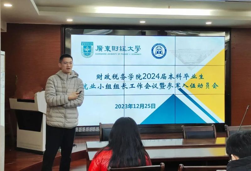 为全面落实教育部、省教育厅和学校有关就业工作要求,推进2024届毕业生就业工作,2023年12月25日,财政税务学院于广州校区立德楼338会议室召开2024届本科毕业生就业工作会议暨参军入伍动员会,学院党委副书记崔晓莹、毕业班辅导员张丹丹、2024届本科毕业生各班就业小组组长参加会议。