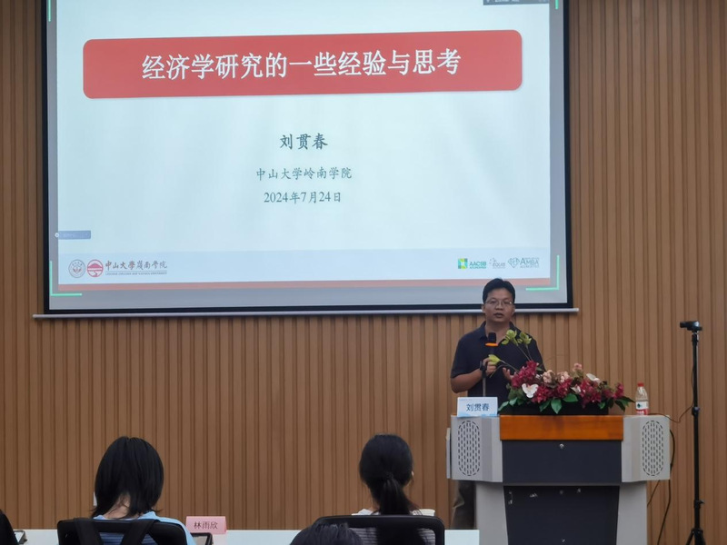 7月24日上午,中山大学岭南学院刘贯春教授主讲“经济学研究的一点心得体会”。刘贯春教授认为经济学研究包括人的行为、资源配置及其效果、政府、制度与经济之间的关系以及人与人的互动,目的在于发现社会问题,对政策效应进行评估,并提高社会福利。刘贯春教授鼓励学员们“细观察、勤思考、重推敲;多阅读、广涉猎、常积累”,好的选题来自广泛的阅读、学术交流、实地调研和生活体悟。