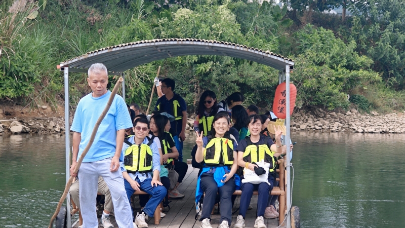 中午时分,大家在竹林餐厅享用了当地特色的客家围餐,品尝了地道的龙门美食。餐后,教职工们乘坐竹筏,欣赏香溪河两岸的风光,体验了别样的水上之旅。在古堡附近,大家还参观了有着500多年历史的古码头,感受了历史的厚重。