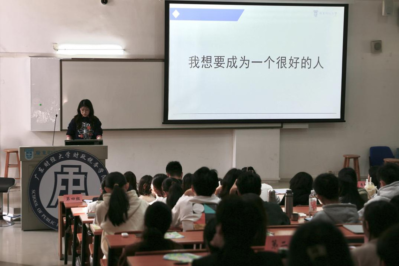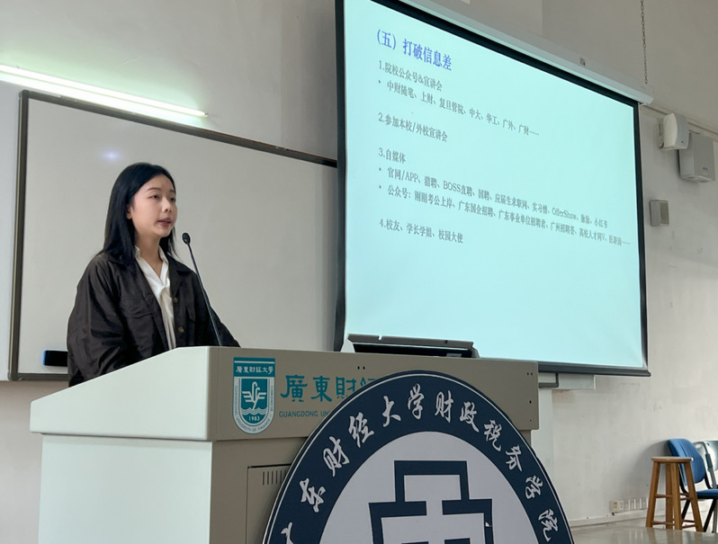 此外辅导员助理殷佩怡作为本次职规赛的报名者,也在开班式中向大会分享了《我要成为一名优秀辅导员》的参赛作品。她鼓励同学们要借此参赛机会和专题行动班的机会,尽早了解就业形势,转变就业观念,树立职业目标,不断向目标迈进。