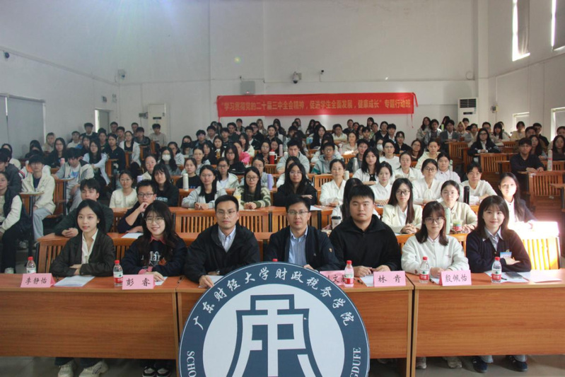 为深入学习贯彻党的二十届三中全会精神、全面加强党团建设、班风学风建设、全面开展职业引领,提升学生就业创业能力,“五育”并举,培养全面发展人才,2024年11月26日,由财政税务学院主办,财政税务学院分党校、英国威廉集团官网“港湾”辅导员工作室联合承办的“学习贯彻党的二十届三中全会精神,促进学生全面发展,健康成长”专题行动班开班仪式在乐学楼103课室召开。