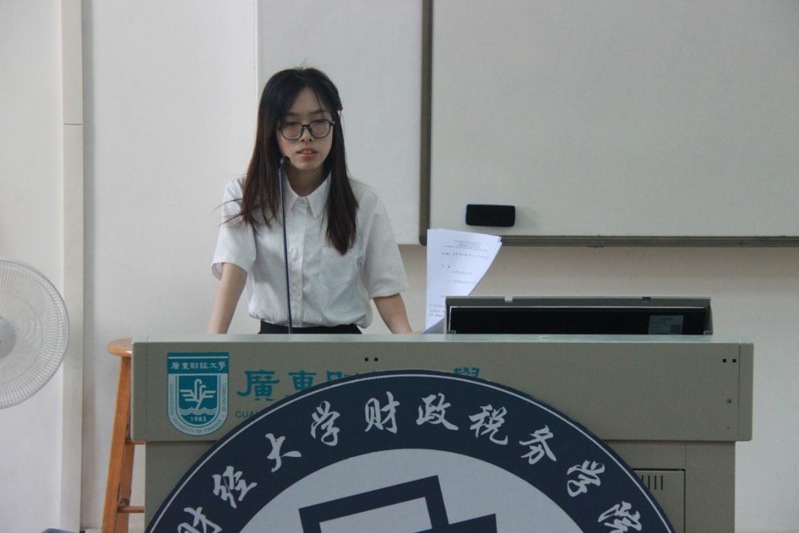 第二项议程:财政税务学院辅导员、“港 湾”工作室主持人黄迪作学生工作发展报告