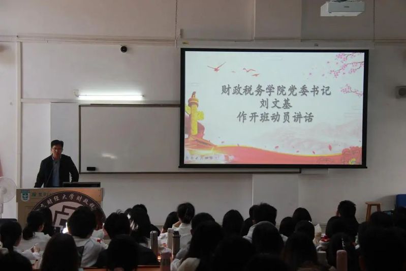 第一项议程:财政税务学院党委书记刘文基作动员讲话