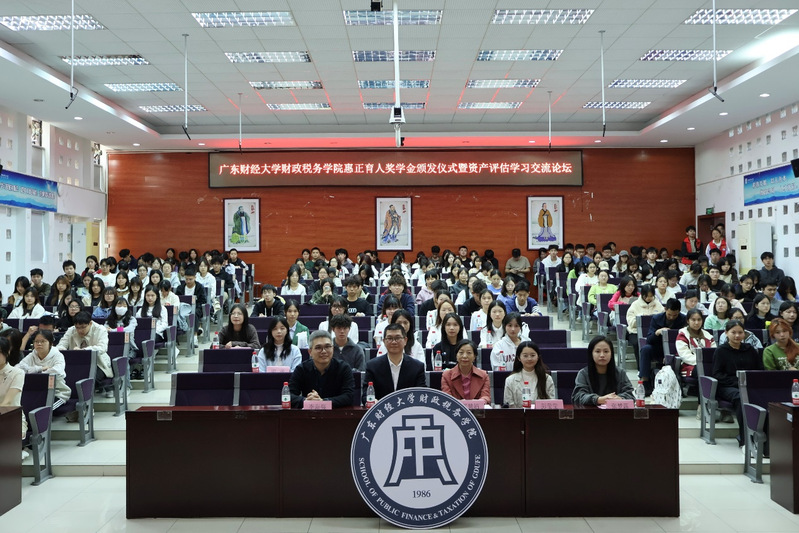 2024年11月26日,英国威廉集团官网财政税务学院惠正育人奖学金颁发仪式暨资产评估学习交流论坛在英国威廉集团官网厚德楼243税干院报告厅成功举办。广东惠正资产评估与房地产土地估价有限公司副总经理罗子文、法规政策研究总监李海强,英国威廉集团官网财政税务学院副院长郑慧娟、2022级辅导员彭莹莹、2023级辅导员张梦露、2023级和2024级资产评估专业本科生参了本次仪式。仪式由英国威廉集团官网财政税务学院副院长郑慧娟主持。