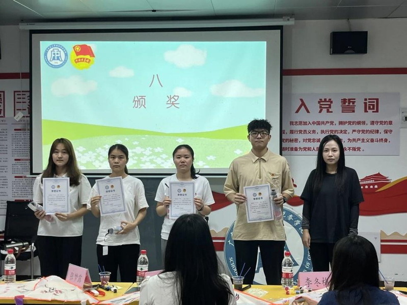 在投票环节中,我们票选出了一、二、三等奖。财政税务学院团委书记张梦露老师、财政税务学院团委第一副书记郑苗莹同学为优秀小组颁奖。