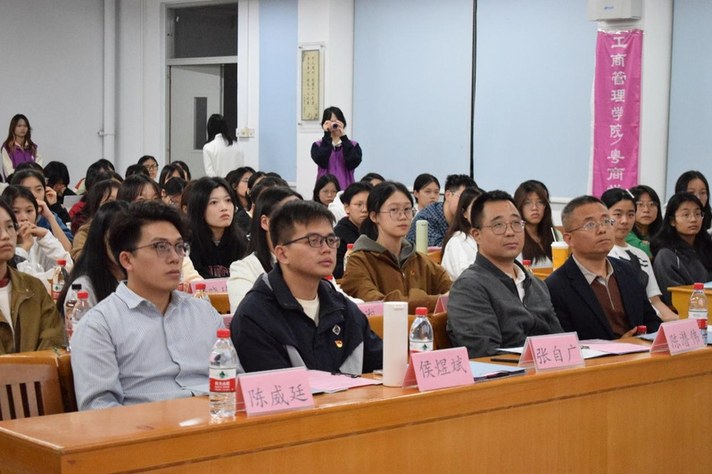为深入学习贯彻党的二十届三中全会精神,提升学生党员、发展对象及入党积极分子的党性修养,增进同学们对入党流程的认识及对党建知识的了解,2024年12月10日晚,财政税务学院与工商管理学院在励学楼306联合举办了以“商海杨帆党领航,税苑铸魂党心坚”为主题的党建教育主题党日活动。工商管理学院党委副书记张自广、财政税务学院佛山校区党支部书记侯煜斌、工商管理学院学生党支部书记陈潜伟、财政税务学院佛山校区团委书记陈威廷及学生代表共120余人参加活动。