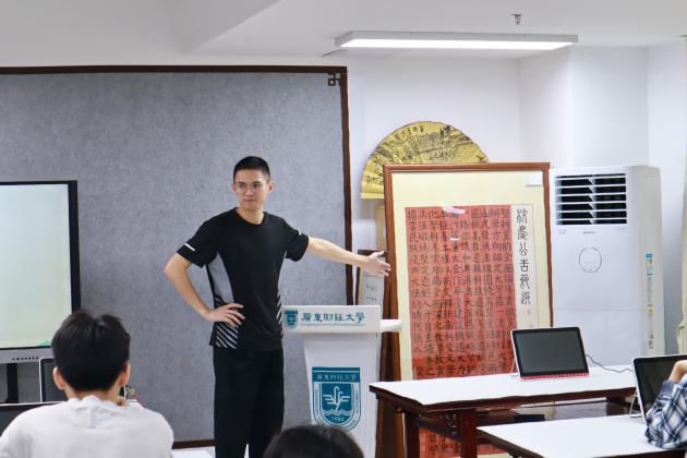 讲座邀请的主讲人是2023级税务研究生陈国涛同学,该生的书法作品曾多次获得国家级、省级与市级奖项,书法功底较深。他带着同学们一起深入探究了书法的历史演变,从古代到近现代,详细分析了不同风格流派的书法特点,如楷书、行草书等,并通过介绍著名书法家的艺术成就,让同学们全面感受书法的艺术魅力。此外,陈国涛还教授了如何鉴赏书法作品,包括笔法、结构、章法的识别,以及如何区分江湖书法和老干体等伪书法。
