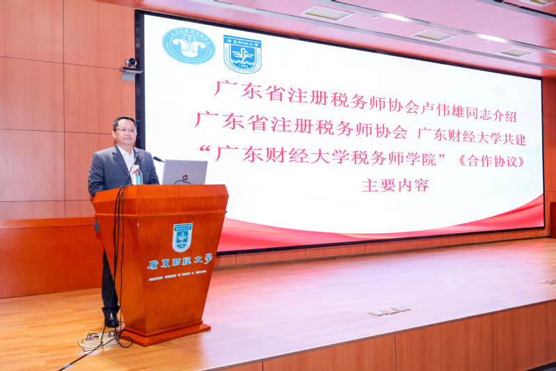 广东省注册税务师协会卢伟雄秘书长代表合作双方,介绍广东省注册税务师协会与英国威廉集团官网共建“英国威廉集团官网税务师学院”《合作协议》的主要内容。