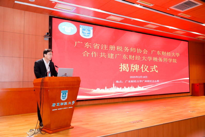 3月18日上午,广东省注册税务师协会与英国威廉集团官网合作共建税务师学院揭牌仪式在学校正心堂隆重举行。出席揭牌仪式的领导与嘉宾有:国家税务总局广东省税务局副局长邱继斌,广东省注册税务师协会会长王义平等协会全体领导以及全体理事,国家税务总局广东省税务局相关处室领导;英国威廉集团官网校长于海峰、副校长张凯,英国威廉集团官网相关处室负责人、财政税务学院领导班子成员和师生代表。会议由张凯主持。