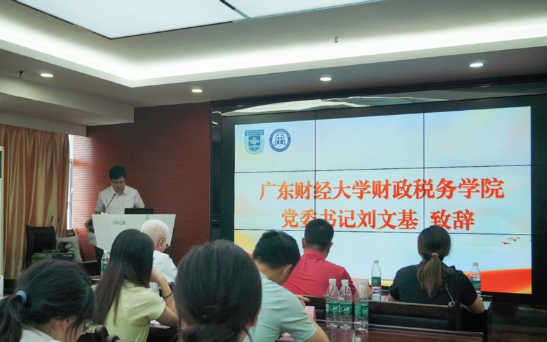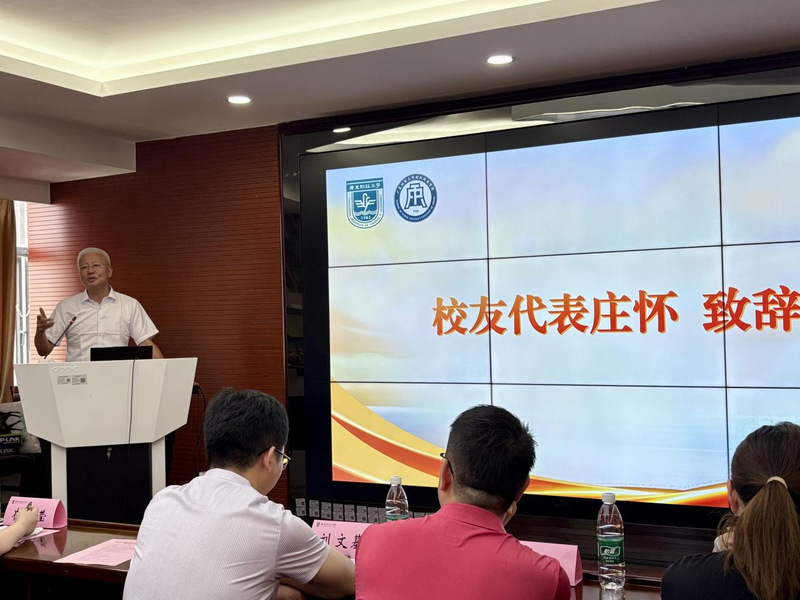 会议在庄重的国歌声中拉开帷幕。首先,校友代表庄怀致辞,庄怀校友现任汕头市人大常委会委员、财政经济委副主任委员、预算工委副主任。他向同学们分享了自己的大学生活和毕业后的工作历程,着重讲述了自己为期三年的援疆工作经历。这段经历不仅是他个人成长的宝贵财富,也为同学们树立了担当作为的榜样。庄怀校友十分关心财税青年学子的成长与发展,鼓励同学们以扎实的学识应对挑战,以坚韧的信念追求卓越。