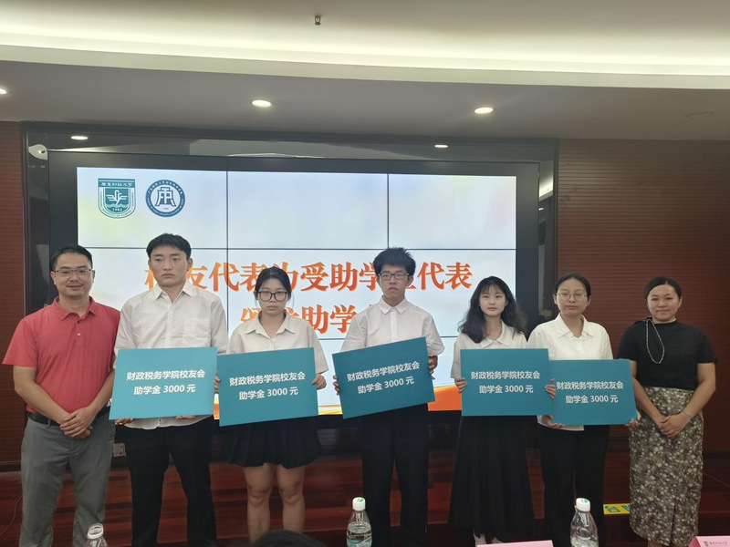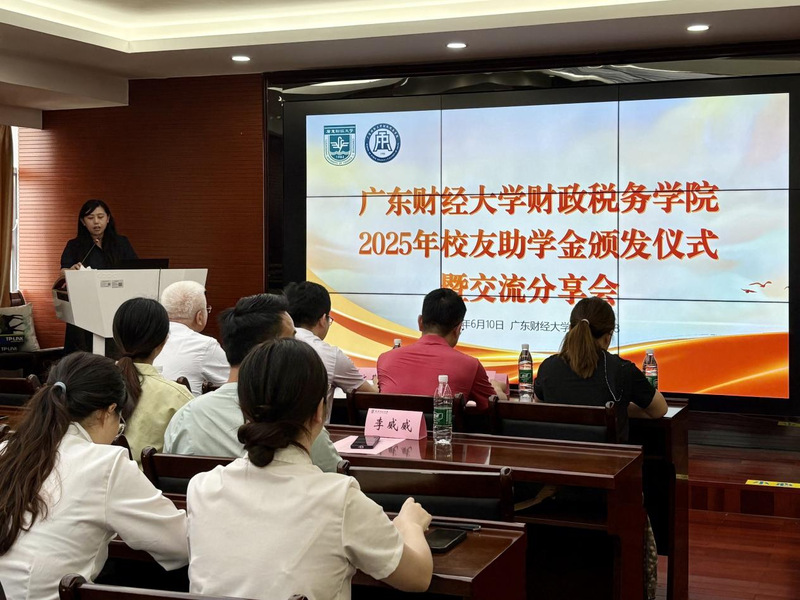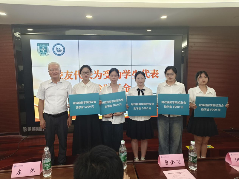 6月10日上午,财政税务学院在立德楼338会议室举行2025年校友助学金颁发仪式暨交流分享会。会议邀请了财政税务学院89届校友毕业生庄怀、财税校友会执行会长曾金飞、财税务学院校友基金管理委员会委员何嘉宜三位校友嘉宾出席现场。财政税务学院党委书记刘文基、副书记崔晓莹、本科生辅导员李威威、彭莹莹,全体受助学生和各班级学生代表参加会议。会议由崔晓莹主持。