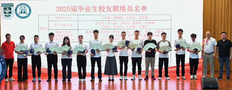 最后,财税校友会执行会长邵建盛、黄博宇、曾金飞共同为2025届校友联络员颁发聘书并赠送纪念礼物。他们表示,校友联络员作为联结校友与母校的重要纽带,肩负着凝聚校友资源、传递母校关怀的重要使命,希望各位联络员以强烈的责任担当,充分发挥桥梁作用,积极汇聚校友力量,共同为母校的高质量发展添砖加瓦。