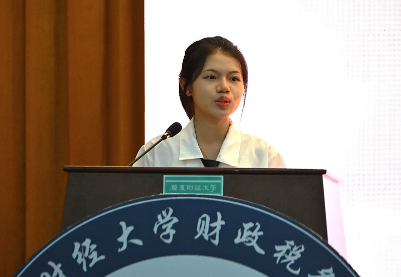 优秀本科生代表邓雅深切表达了对学校和学院精心培育的感恩之情。她表示,这份师生情谊与谆谆教诲是她一生的宝贵财富,必将铭记于心。她以“厚德、励学、笃行、拓新”的校训为主题,回顾了在广财四年的求学时光,向师生们分享了她从学术科研到创新创业,从专业学习到校外实践,的成长历程。她认为凡是贵在坚持,要脚踏实地,踏实做事。她寄语师弟师妹们牢记“精财通税,经世济民”的初心,在建设祖国、服务社会发展的征程中以实际行动彰显财税人的使命担。
